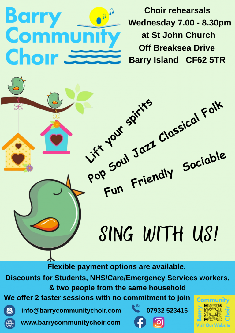 Alison Shone – a highly experienced and professional soprano performer, singing teacher and conductor, and truly motivational choir leader; and Amy Reynolds – a professional and highly experienced accompanist, pianist & piano teacher, and a real support to members. Live music accompaniment contributes hugely to a positive choir experience.