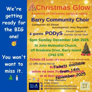 Can’t believe this is only 5 weeks away already. Don’t miss out. Tickets go on sale soon, available online from 14th November. Watch out for the posters soon to be popping up around Barry #concerttickets#christmasconcert#choir#singcarols